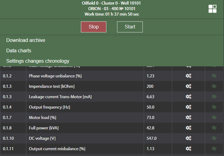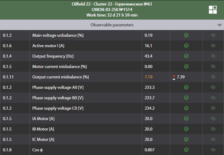 - Reducing the number and duration of stops due to prompt response to condition of the ESP according to information from the “Orion Pulsar” emergency situations alert system;